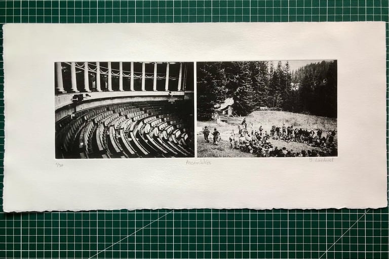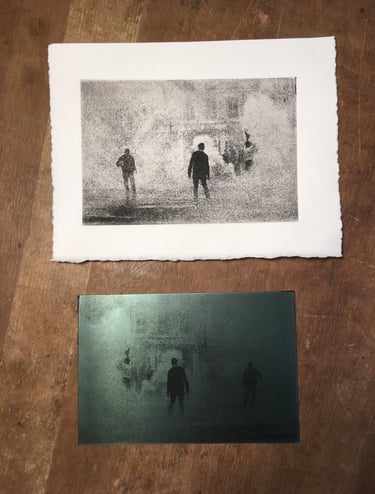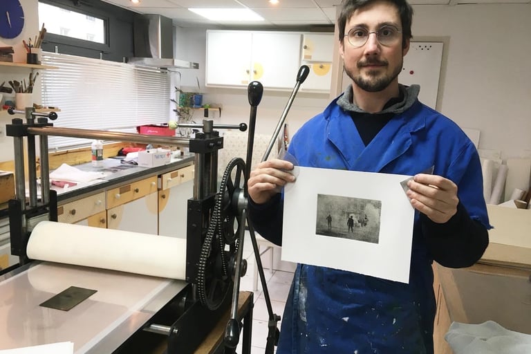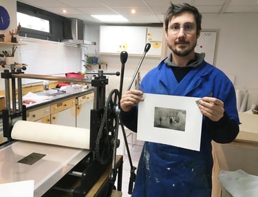 La graveuse malouine Kim Coz m'a fait découvrir les techniques de la taille-douce et de l'eau forte. En découvrant ce medium, j'ai alors pris conscience des liens profonds entre la gravure et la photographie. Au début du XIXe siècle, c'est la gravure qui permet la reproductibilité des oeuvres visuelles. Pour les inventeurs de la photographie, ce medium est le point de départ naturel pour leurs recherches.